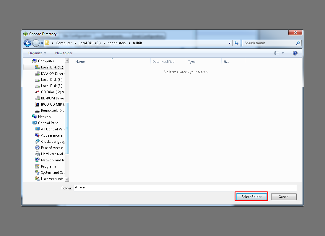 Select desired poker network from the list on the left (for example FullTilt). Take a closer look at the Directory Configuration section. Click on the small three dot button to open a folder browse dialog.